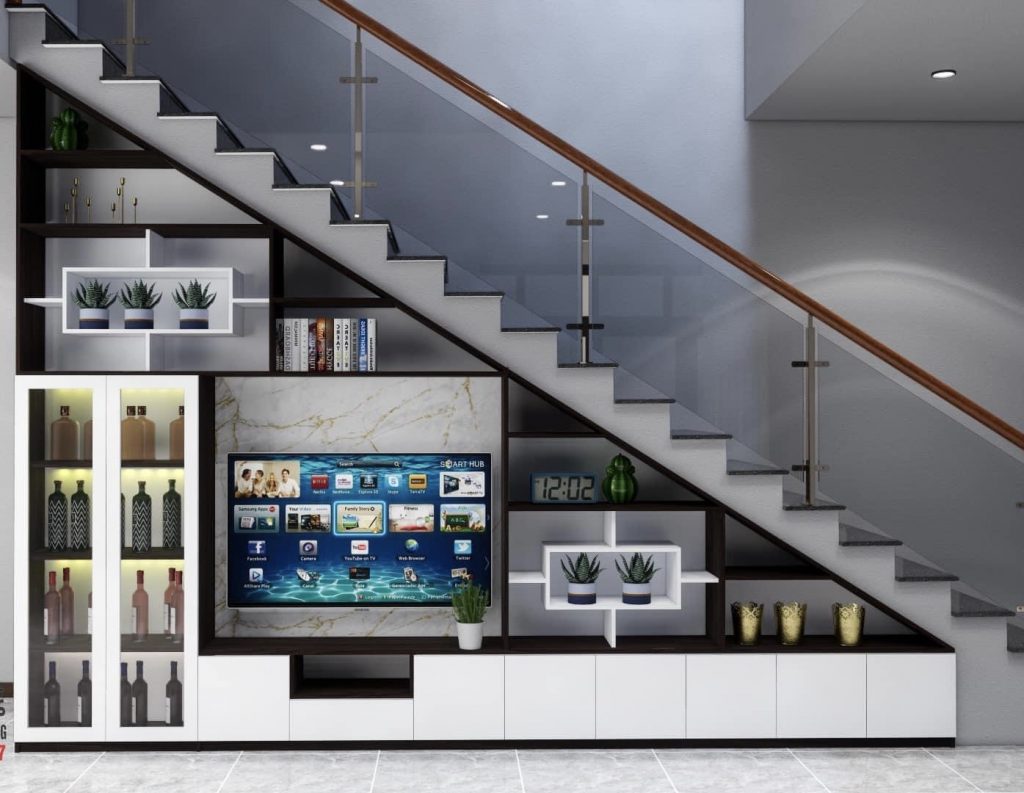 Tùy thuộc vào nhu cầu của từng gia đình để bố trí tủ nhựa gầm cầu thang với những công dụng khác nhau. Nếu cầu thang ở vị trí phòng khách, bạn có thể tận dụng phần gầm cầu thang để bố trí tivi, chậu cây cảnh nhỏ hoặc những món đồ trang trí độc đáo,… nếu cầu thang ở những vị trí gần bếp bạn có thể đựng các vật dụng cá nhân hoặc trang trí đèn sao cho phù hợp với căn hộ của bạn.