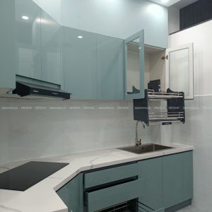 - Hạng mục thi công: Tủ bếp An Cường – cánh Acrylic bóng gương