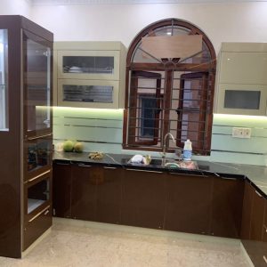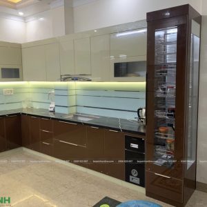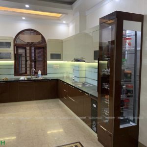 - Vật liệu thi công: Khung bếp Inox 304, cánh kính tay CNC cao cấp